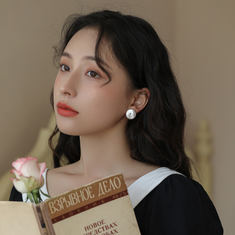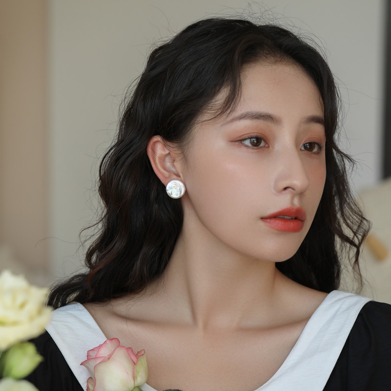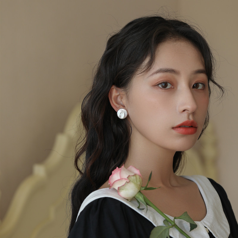 Supernatural freshwater button Baroque Retro Baroque Light Extravaganza Superior Hyperbolic Harbour Wind S925 Silver Needle Ear Pin