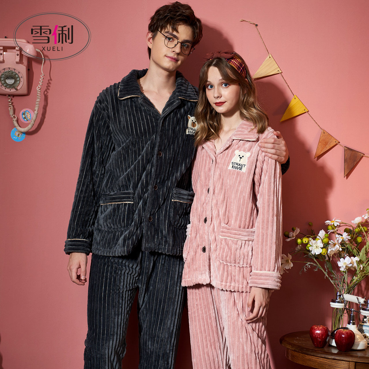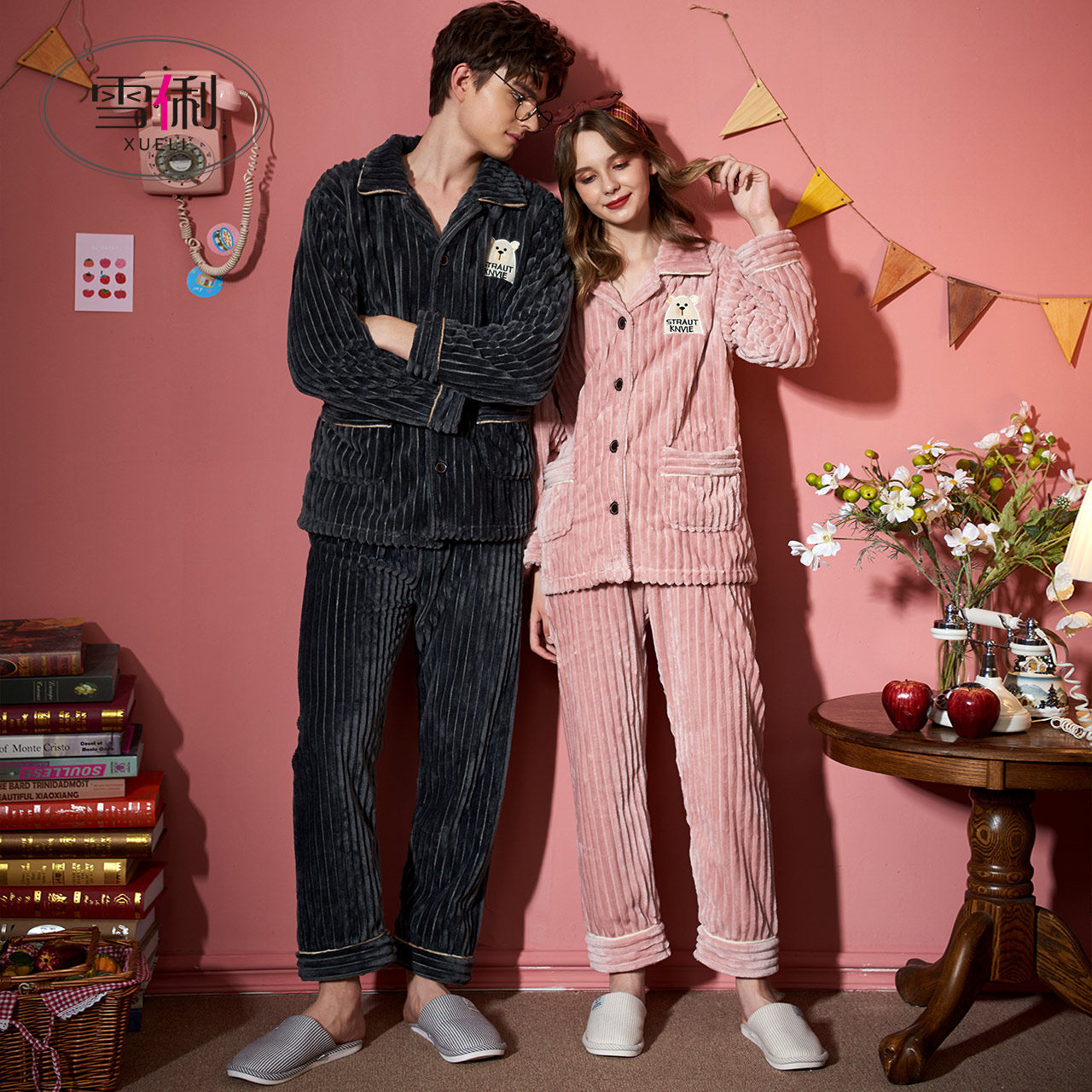 Snow Li couple pajamas ladies autumn and winter thickened plus plush coral velvet home clothes cartoon cute warm suit male