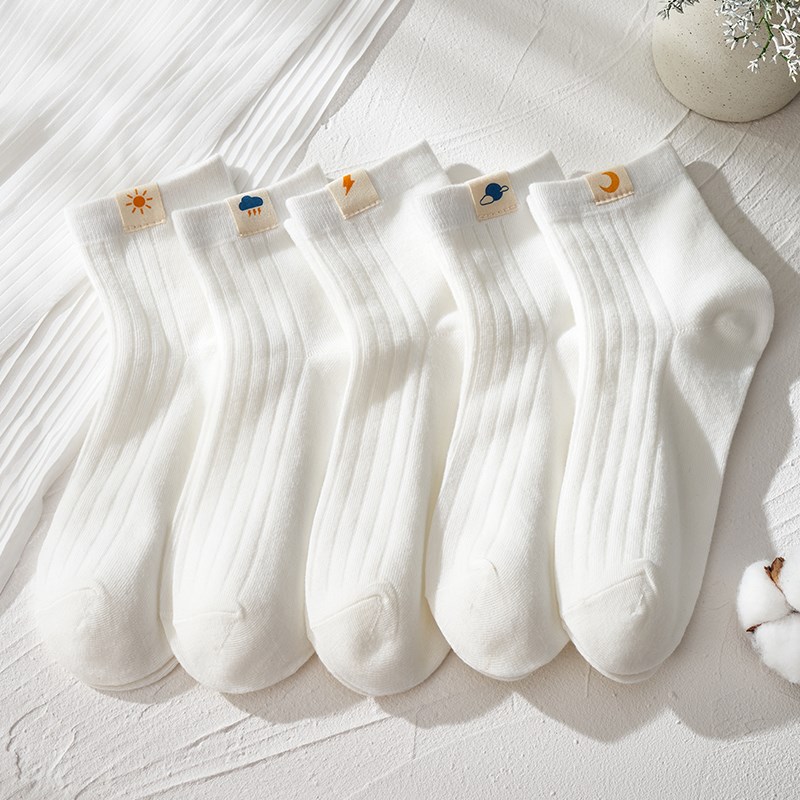 Socks Woman Midbarrel Socks ins Chains Chaoqiu Winter Lovely Day Ensemble White Cloth Mark Weather with Spring and Autumn Thin Stockings Socks