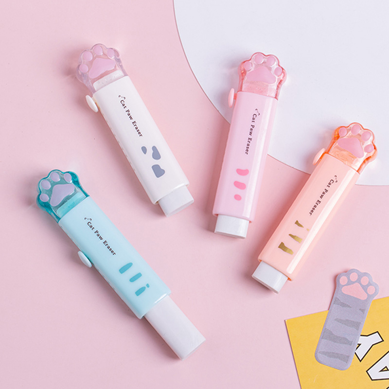 White cat paw push-pull eraser 1 pack Blue cat paw push-pull eraser 1 pack