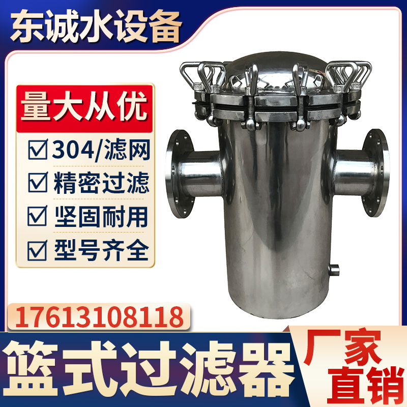 Lift blue quick-open straight-through pipeline decontamination filter Industrial sewage 304 stainless steel flanged basket filter