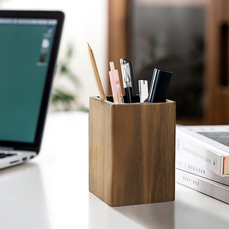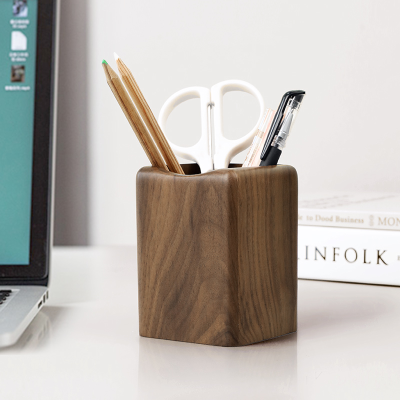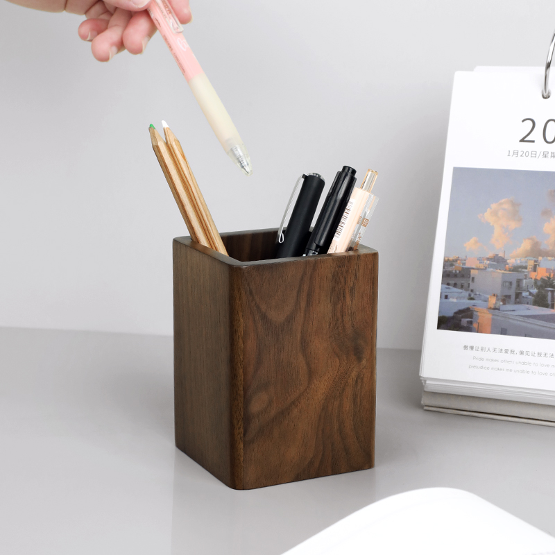 Creative Fashion Pen Holder Solid Wood Nordic Minimalist Woody Makeup Brush Tabletop Containing Box Office Gift Children Pen box