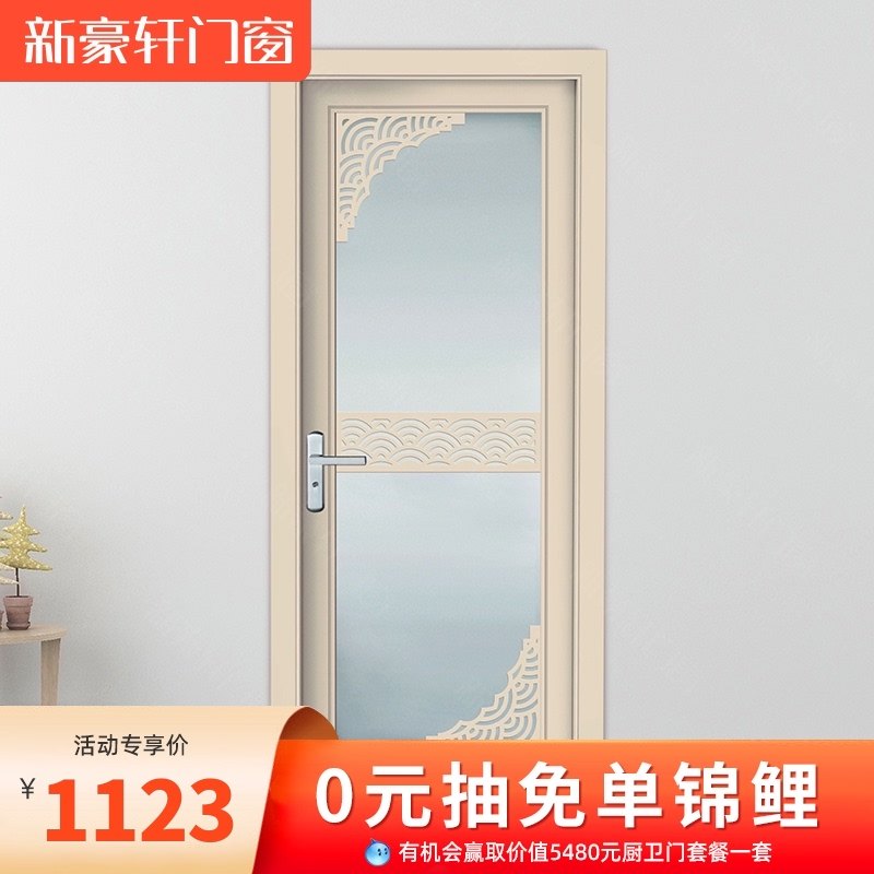 New Hauxuan Doors And Windows V Platinum Aluminum Alloy Flat Door Soundproofing Indoor Bedroom Kitchen Make-up Room Glass Bathroom Door