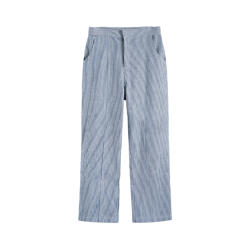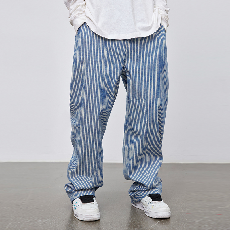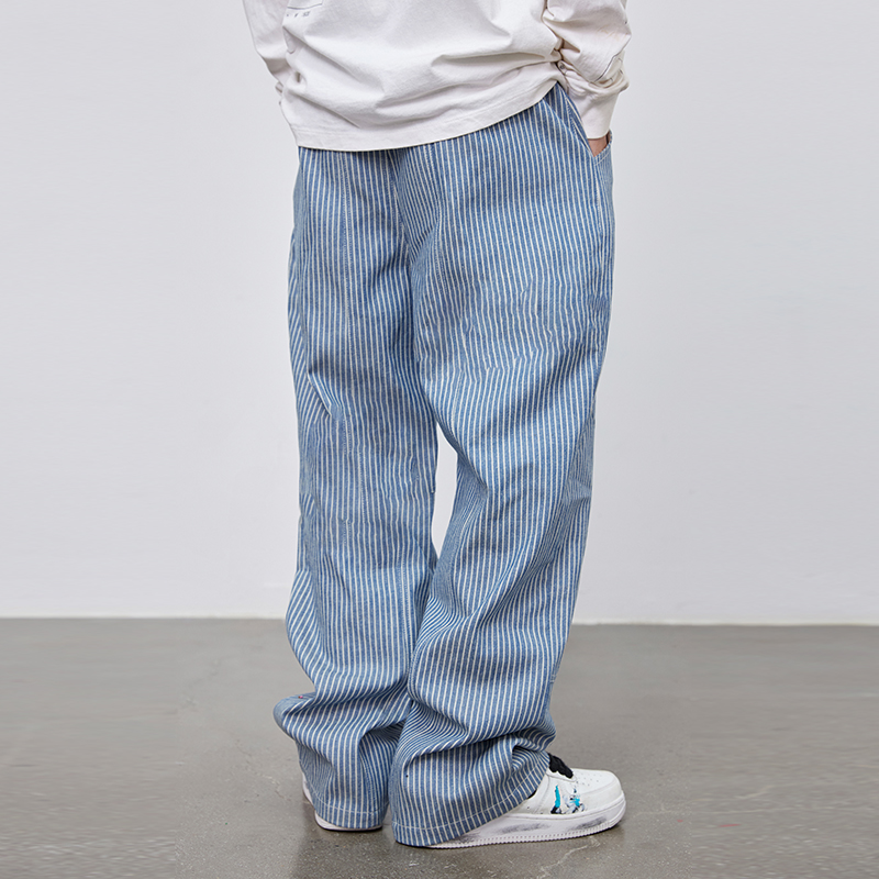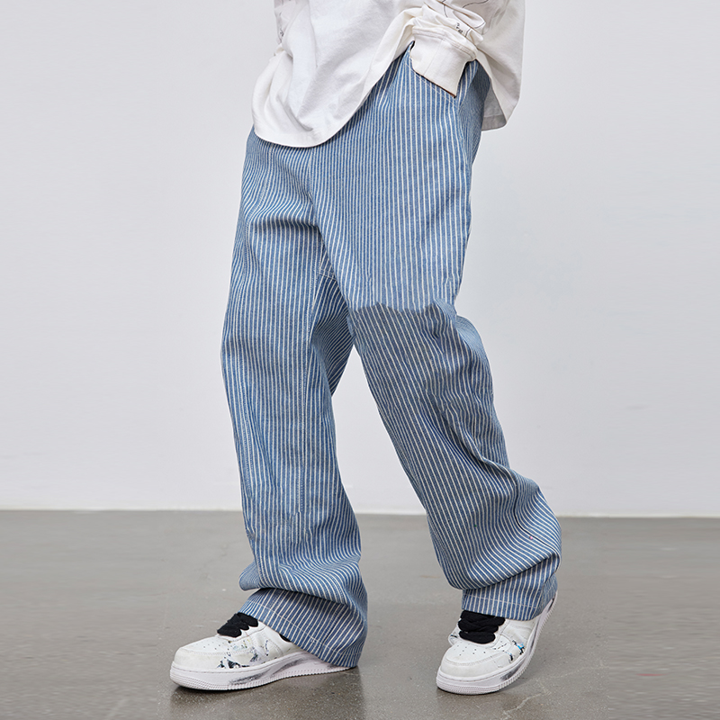 (WUT no sugar brand) Original design small crowdsourced fine white striped washed blue retro jeans casual pants