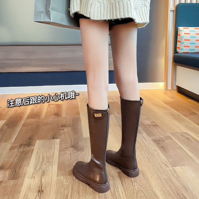 Exploits riding boots female high cylinder autumn-winter brown long cylinder boots 2021 new small sub-conspiculy slim-legged female boots