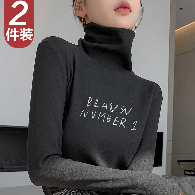Duvet High Collar Bottom Jersey Woman Spring Autumn Hitch 2021 New Autumn Winter Foreign Polo Warm Long Sleeve T-Shirt Woman Blouse