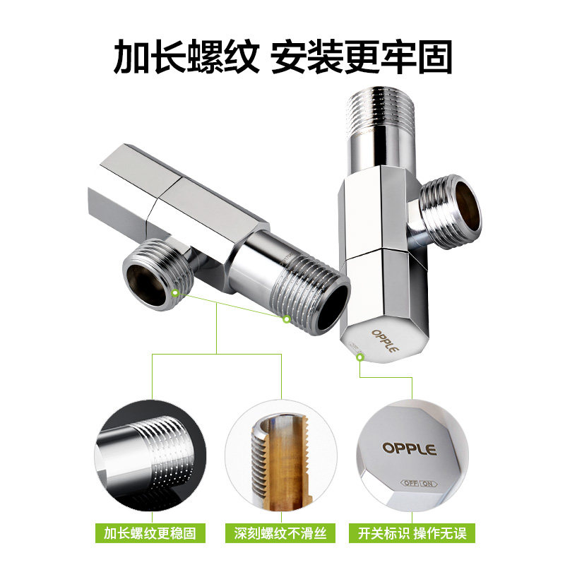 Single Cold Frosted Angle Valve Single Hot Frosted Angle Valve Single Cold Plated Angle Valve Single Hot Plated Corner Valve Full Copper Octagonal Angle Valve in 2-out 90-degree angle valve One-in-two out 180-degree angle valve One-in-two