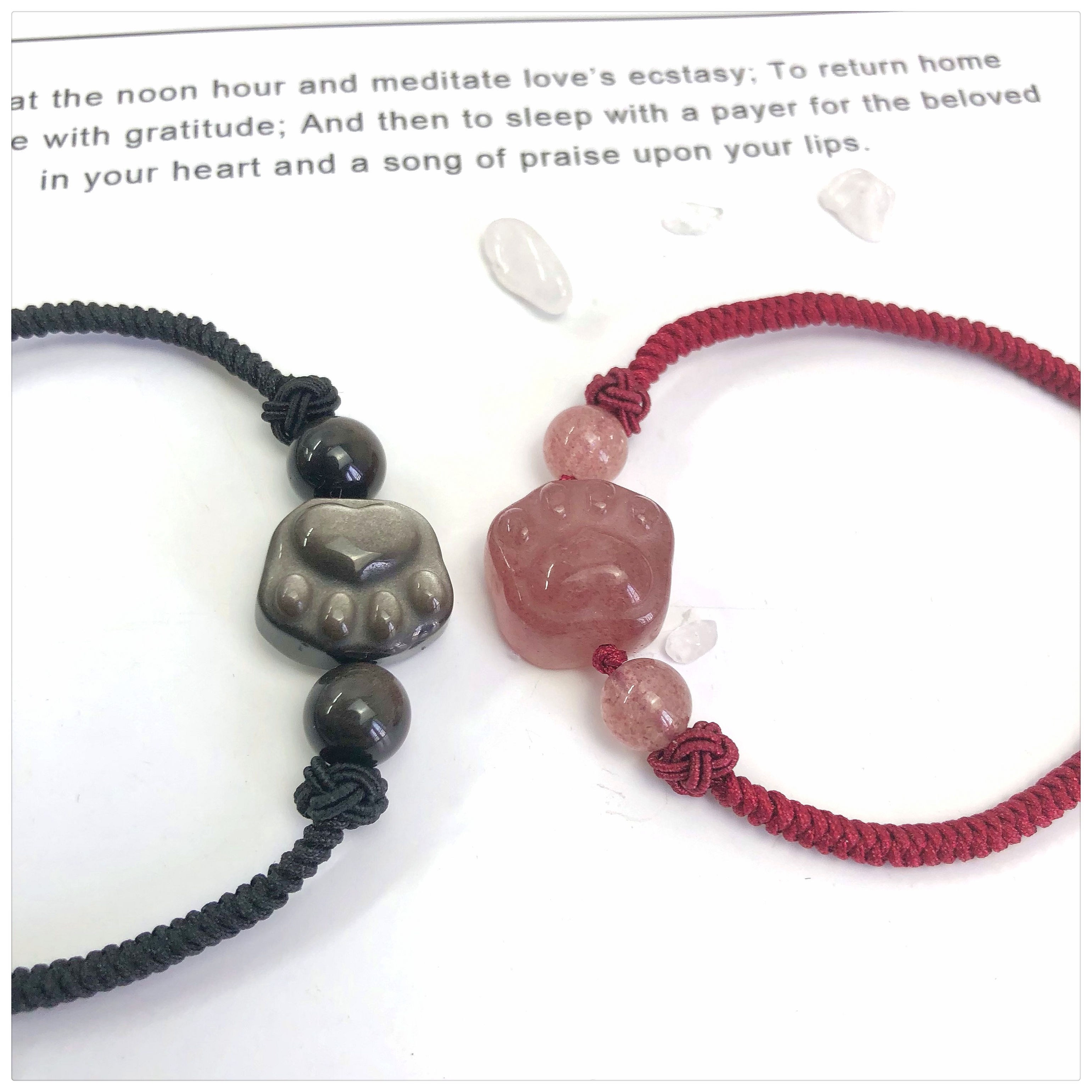 Natural crystal strawberry crystal cat claw braided hand clasp couple hand rope lucky transfer beads lucky red rope girlfriends