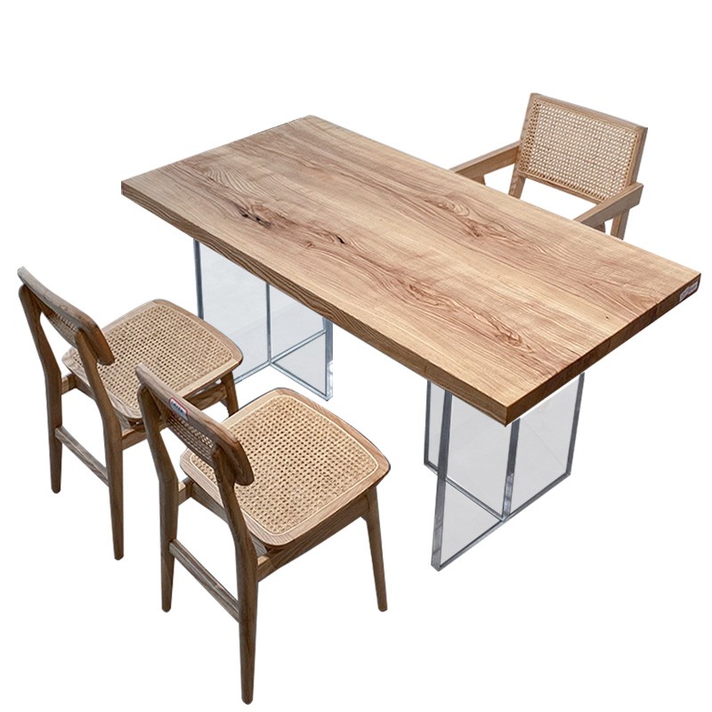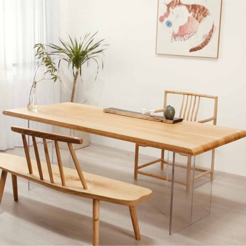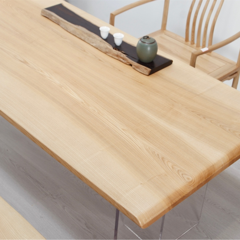 New Chinese North American white wax wood large plate double parquet solid wood original wood color tea table tea table tea table owner desk clear cabin