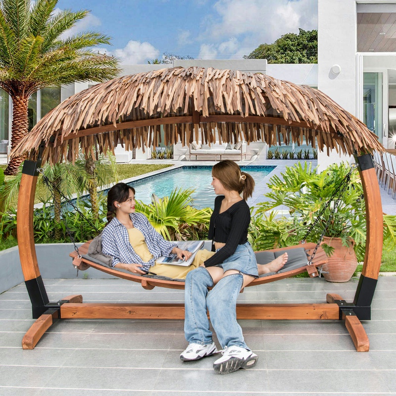 Outdoor Swing ANTI-CORROSION HANGING CHAIR HOME OUTDOOR HANGING BASKET CHAIR PATIO GARDEN SOLID WOOD DOUBLE SLUG ROCKING CHAIR