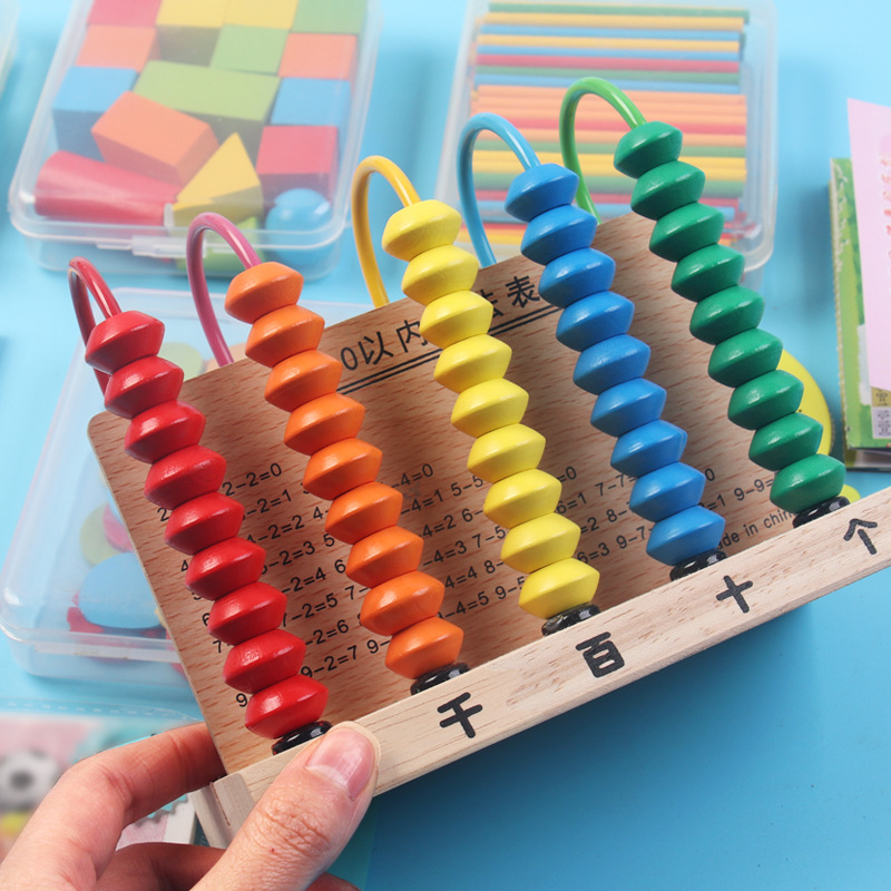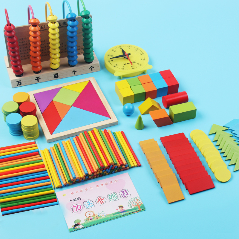Counter primary school first grade second volume mathematics teaching aid box full set of round piece three-dimensional graphics next semester wood products
