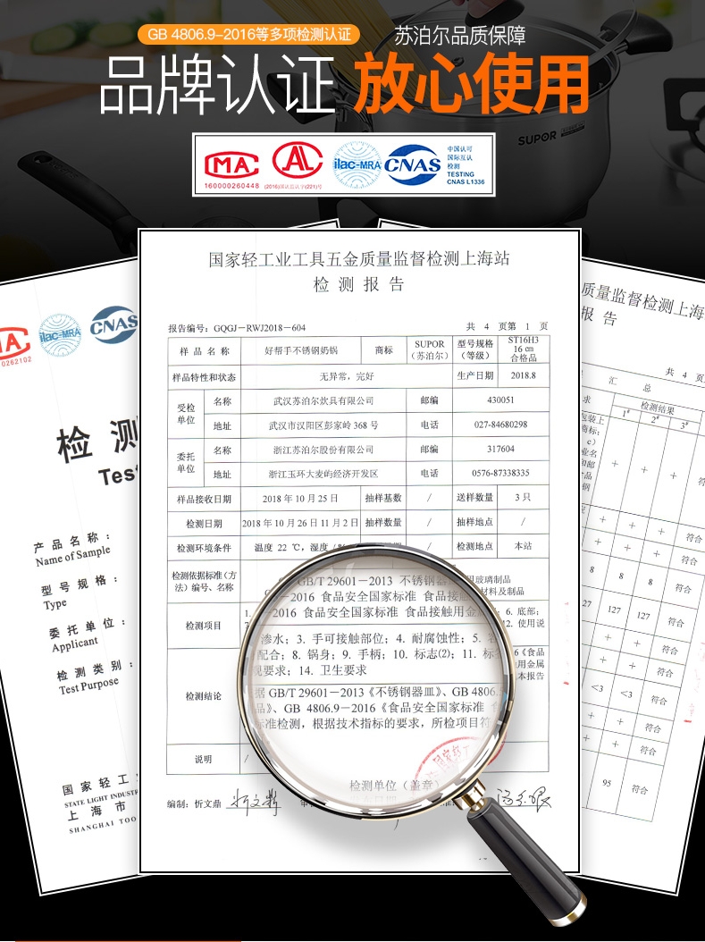 Supoir non-stick milk pan baby accessories for household small number soup pot stainless steel pot staying porridge foam face gas stove