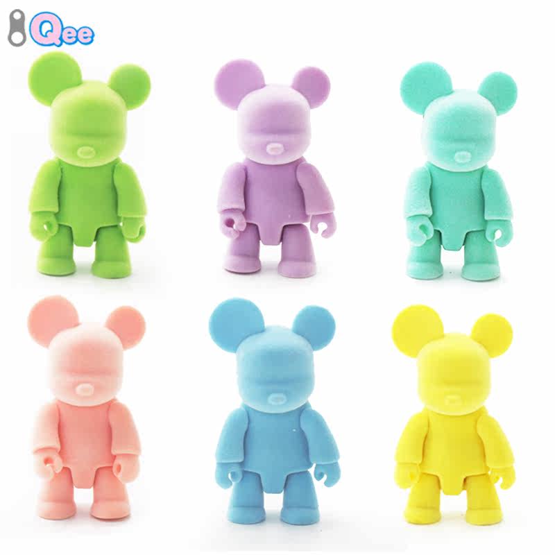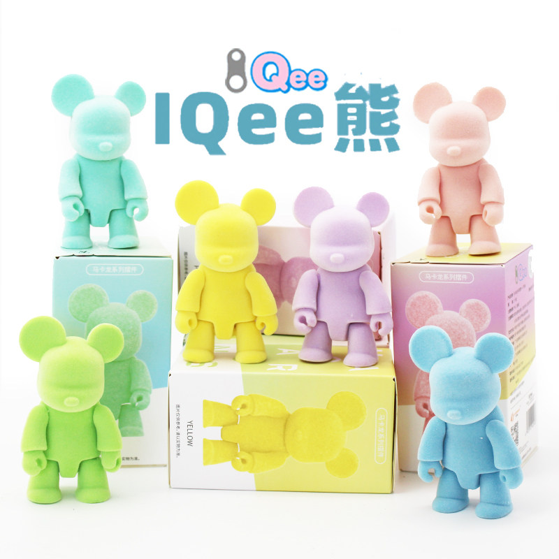 Genuine QEE Building Bear Macaron Flocking Trend Blind Box Model Cute Paparazzi On-board Desktop Pendulum Toy