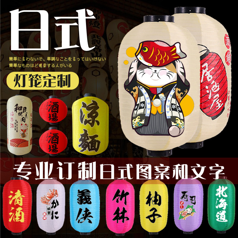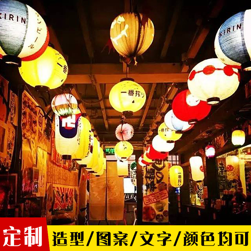 Day-style lantern and wind dining room decorated wood frame Long round lantern Customized Japanese Wine House Outdoor Waterproof Day Stock Store