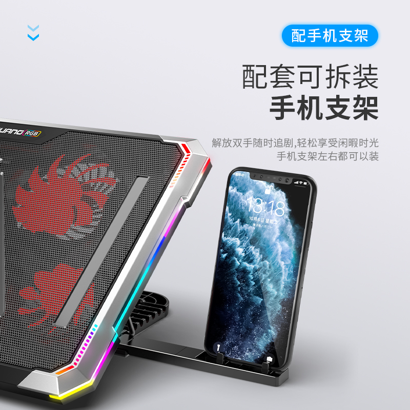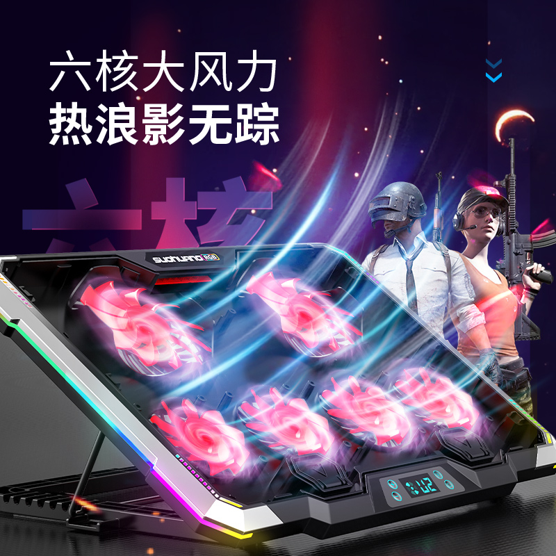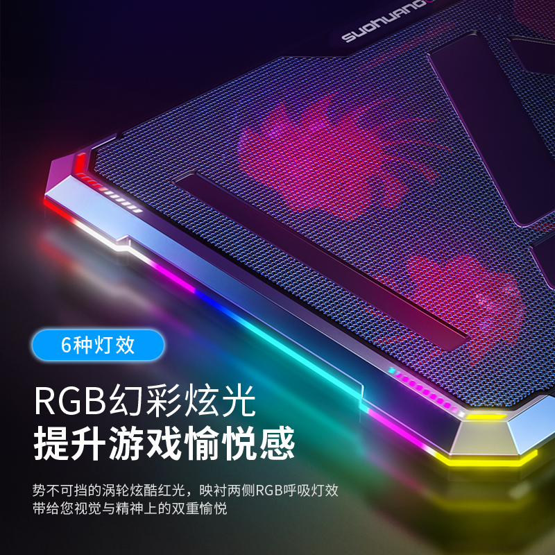 Suohuang 073 laptop fan radiator base water-cooled bracket computer game mute cooling suitable for HP Apple Lenovo Dell Alien RGB light-emitting lamp cooling pad