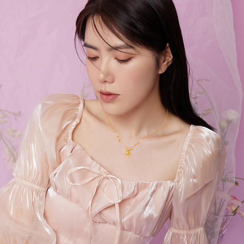 Saturday Fu Gold Necklace Women's 5G Pure Gold Priced INS Wind Bell Set Chain Mingdao Recommended Promise Gold