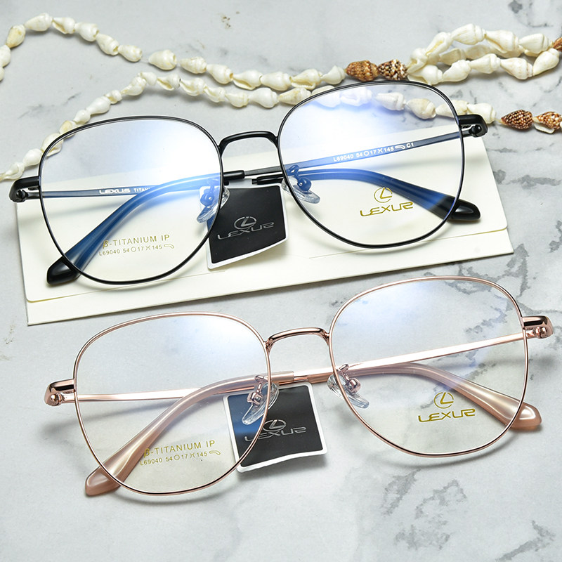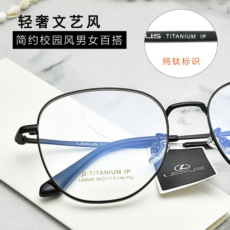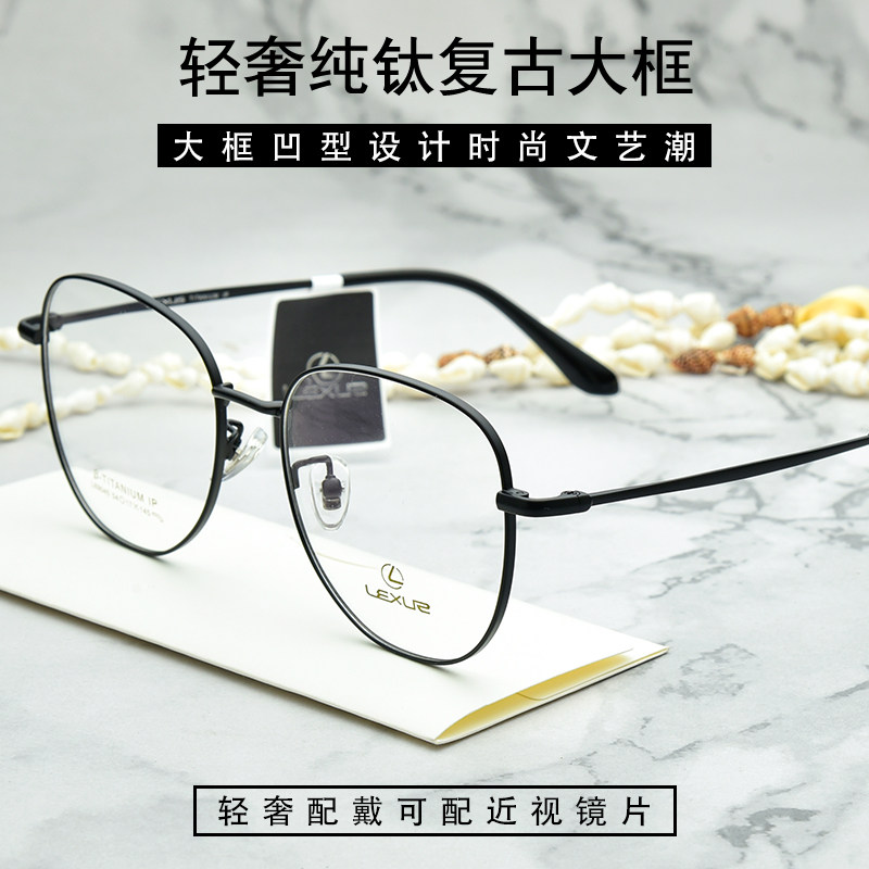 Large frame display face small retro light titanium metal fit myopia glasses men and women same all-frame black rose gold blue