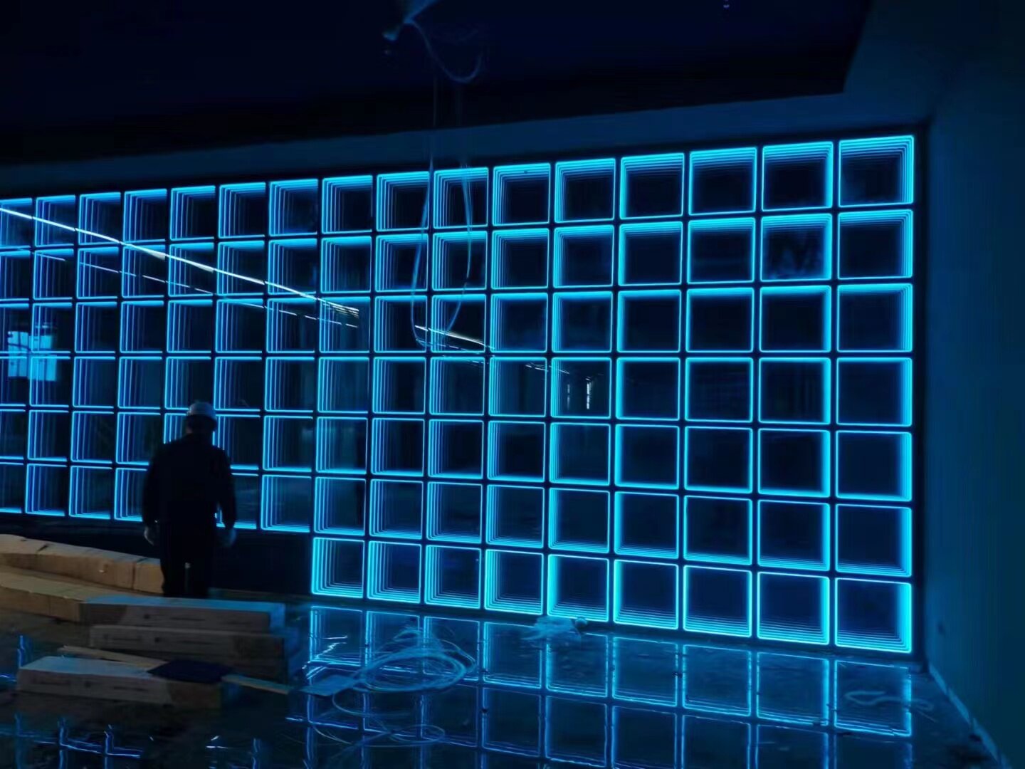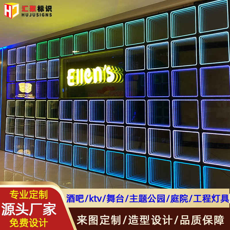 Spot abyss mille-feuille mirror stainless steel luminous word signature door led neon box shape decorative floor tile mirror