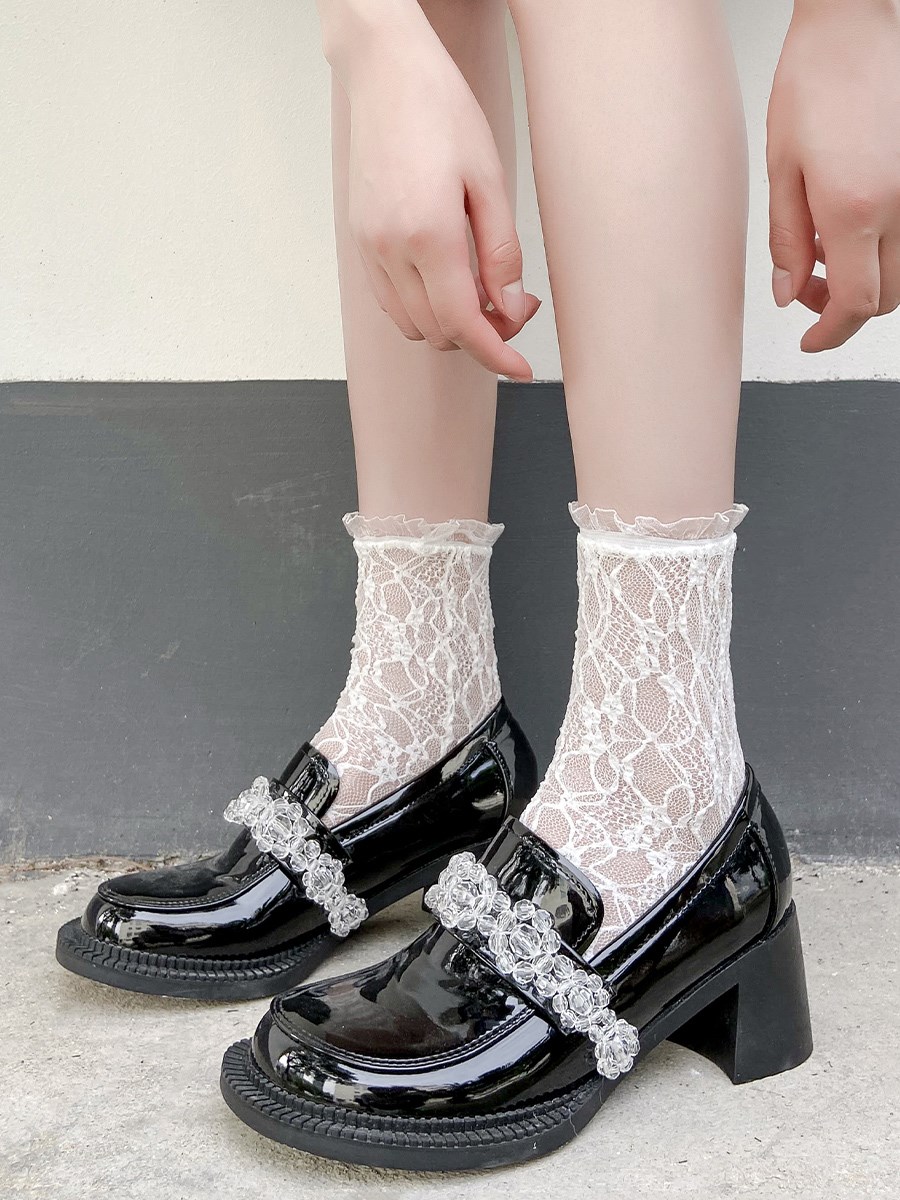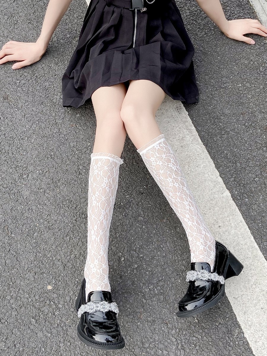 White Lolita lace lace middle cylinder socks children Summer thin Jk Mary Jane shoes long cylinder black calf socks
