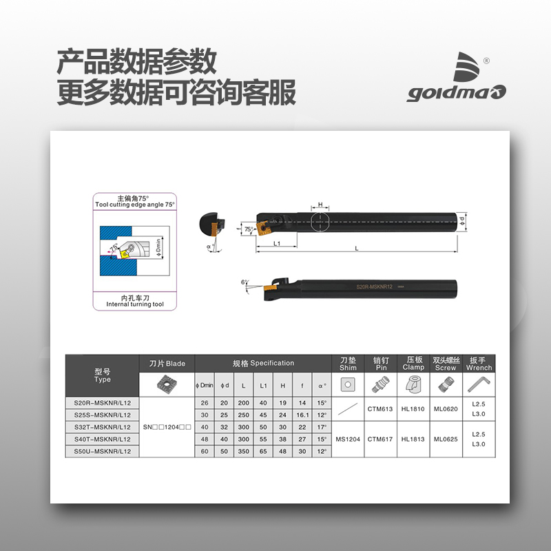 S16Q-MSKNR12 (16 square knife) S16Q-MSKNL12 (16 square knife) S20R-MSKNR12 (20 square knife)