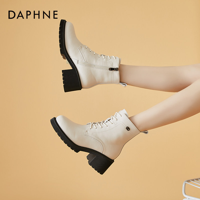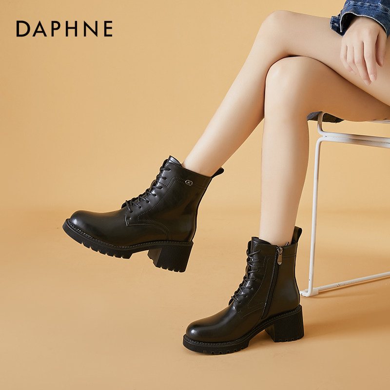 Daphne boots women's 2022 new winter leather plus velvet heightening small short boots thick heel British Martin boots - Taobao