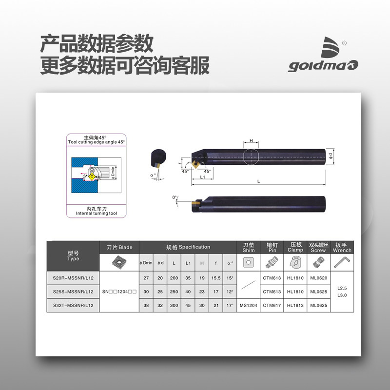 S20R-MSSNR12 (20 square positive knife) S20R-MSSNL12 (20 square counter knife) S25S-MSSNR12 (25 square positive knife)