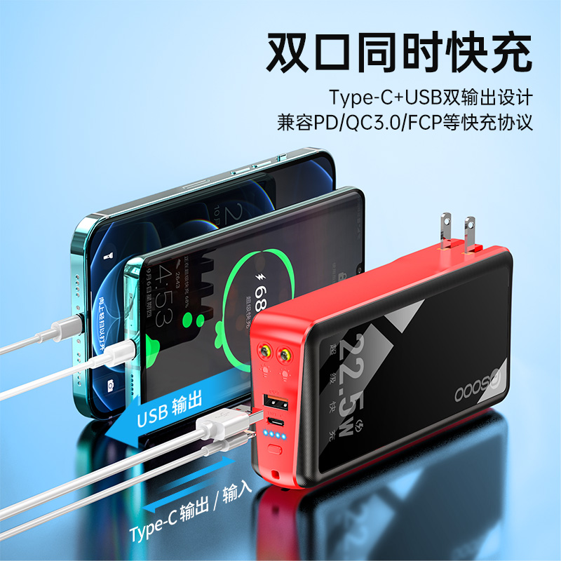 30000 mAh 22 5W super fast charging mobile charging PD with plug Bring your own line Three-in-one wireless action power Huawei Apple Xiaomi vivooppo Universal extra-large capacity 1000