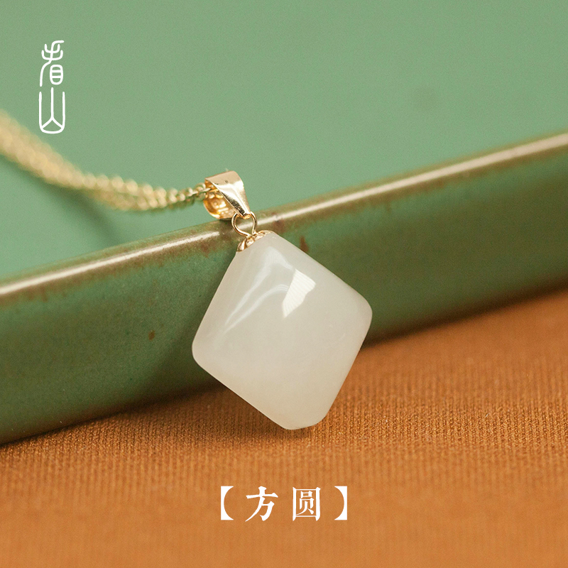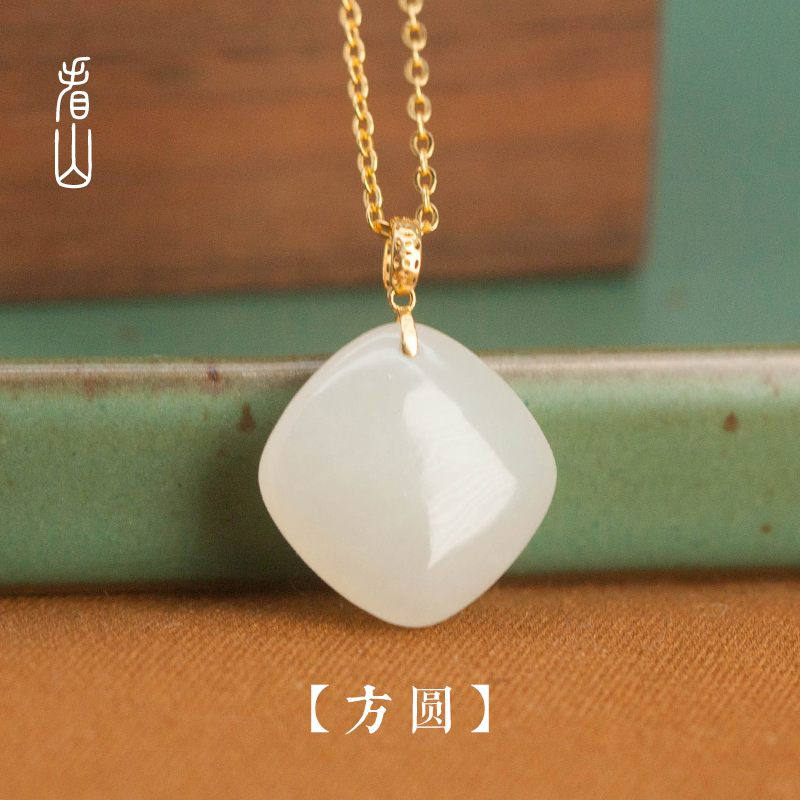 Look at the mountains) Fangyuan) and Tian Sheep Fat White Jade Pendant Arc Egg Noodles Small Women Silver Forbidden City Kking Sweater Necklace Necklace Necklace