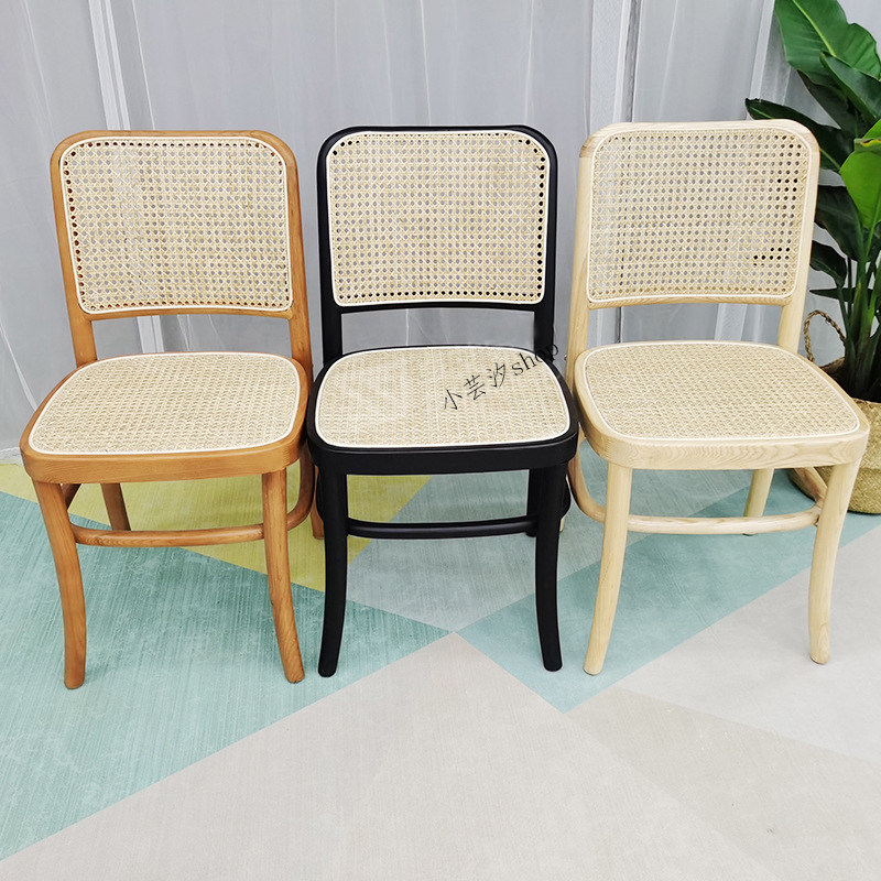 Japanese-style modern rattan chair backrest home B&B cafe simple retro single solid wood self-assembly dining chair