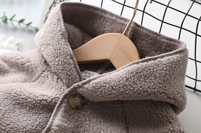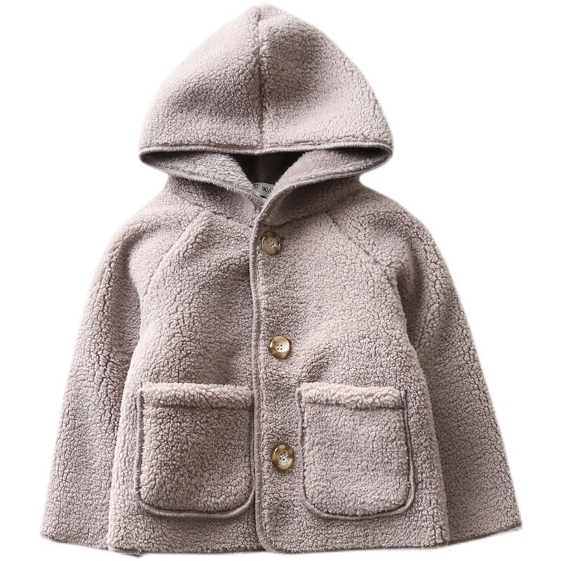 Early spring Children's woolen jacket male soft thickened lamb suede warm even hat blouses female baby cotton clothing 100 hitch
