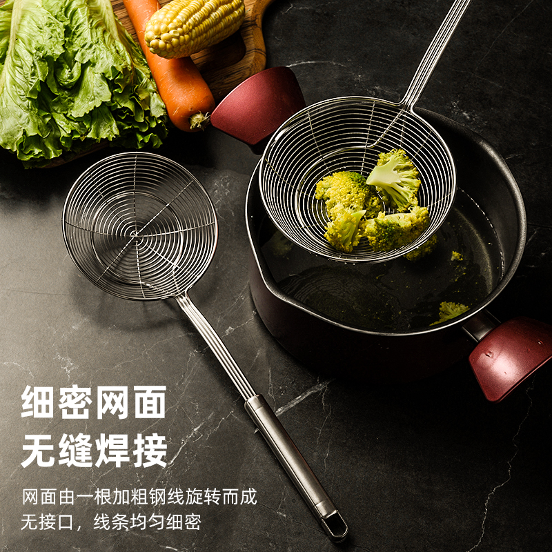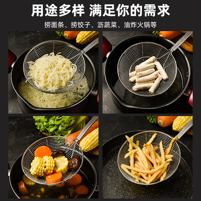 Stainless steel colander household kitchen filter mesh spoon large hedge fence noodles colander fried fish dumplings hot pot leak mesh sieve