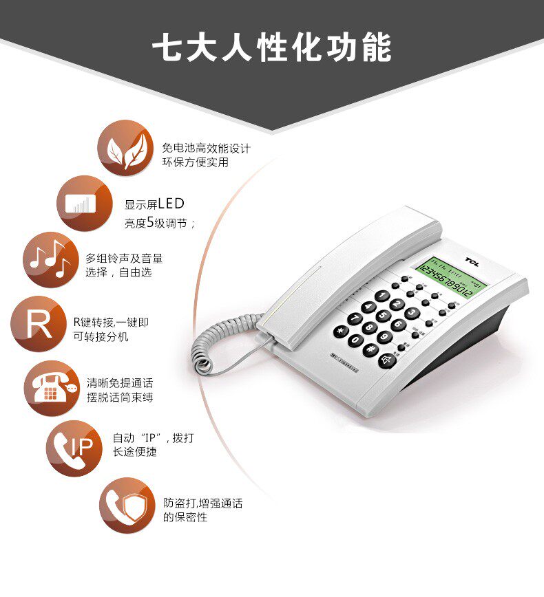 TCL79 telephone home office hotel wired landline caller ID hands-free pass corded landline