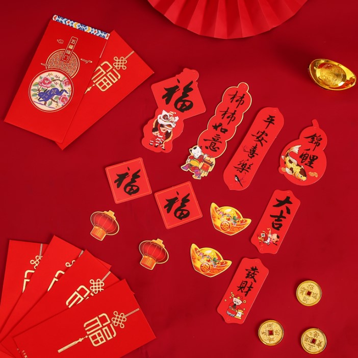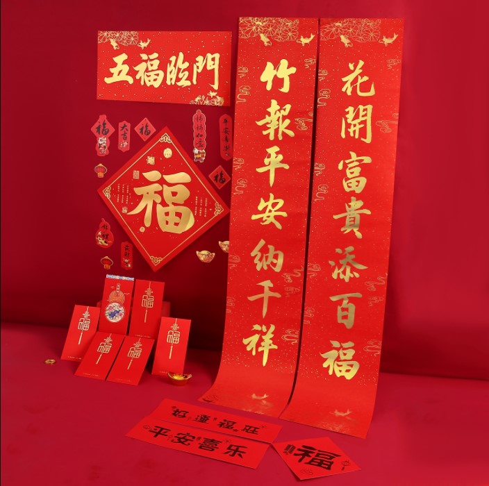 2023 custom spot high-grade flocking Spring Festival couplets silk antithetical bronzing corporate gift package printing logo