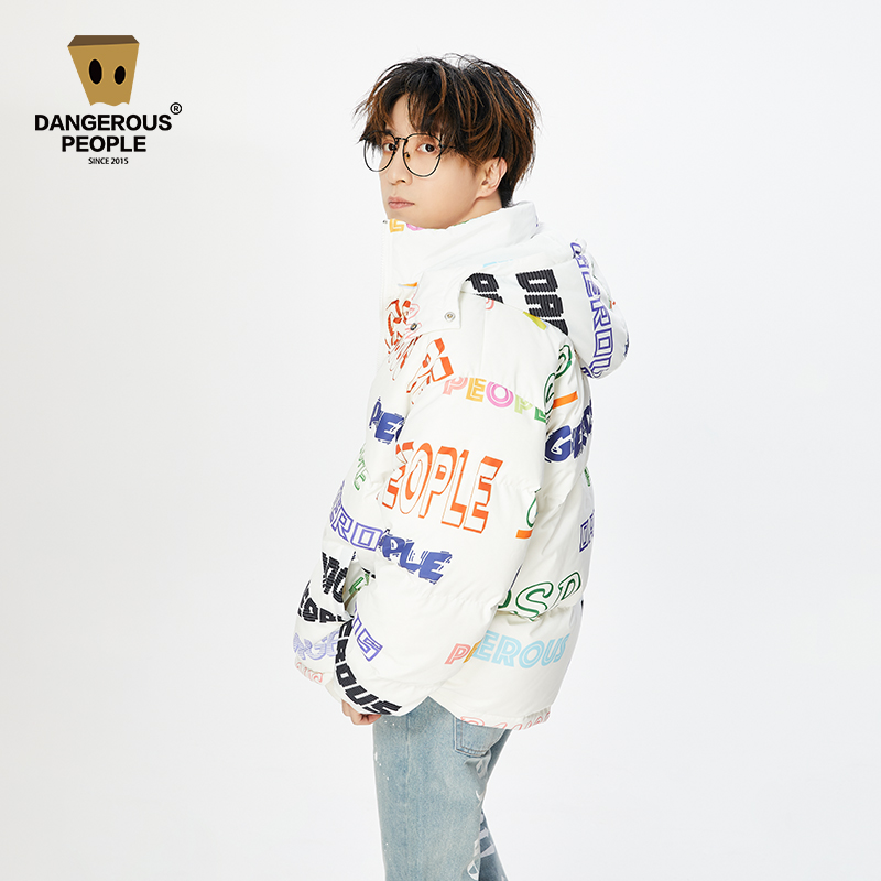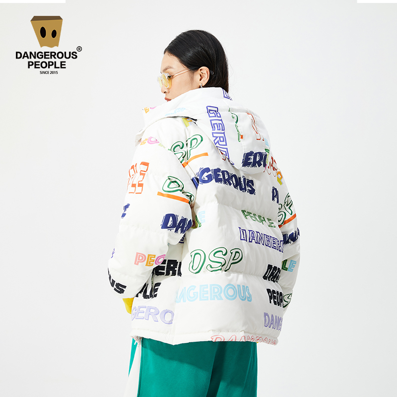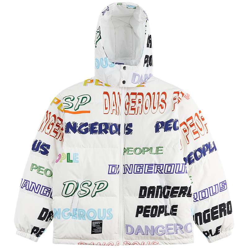 Dangerouspeople Xue Zhiqian dsp full printed multi-color letter down jacket men and women warm winter hooded jacket
