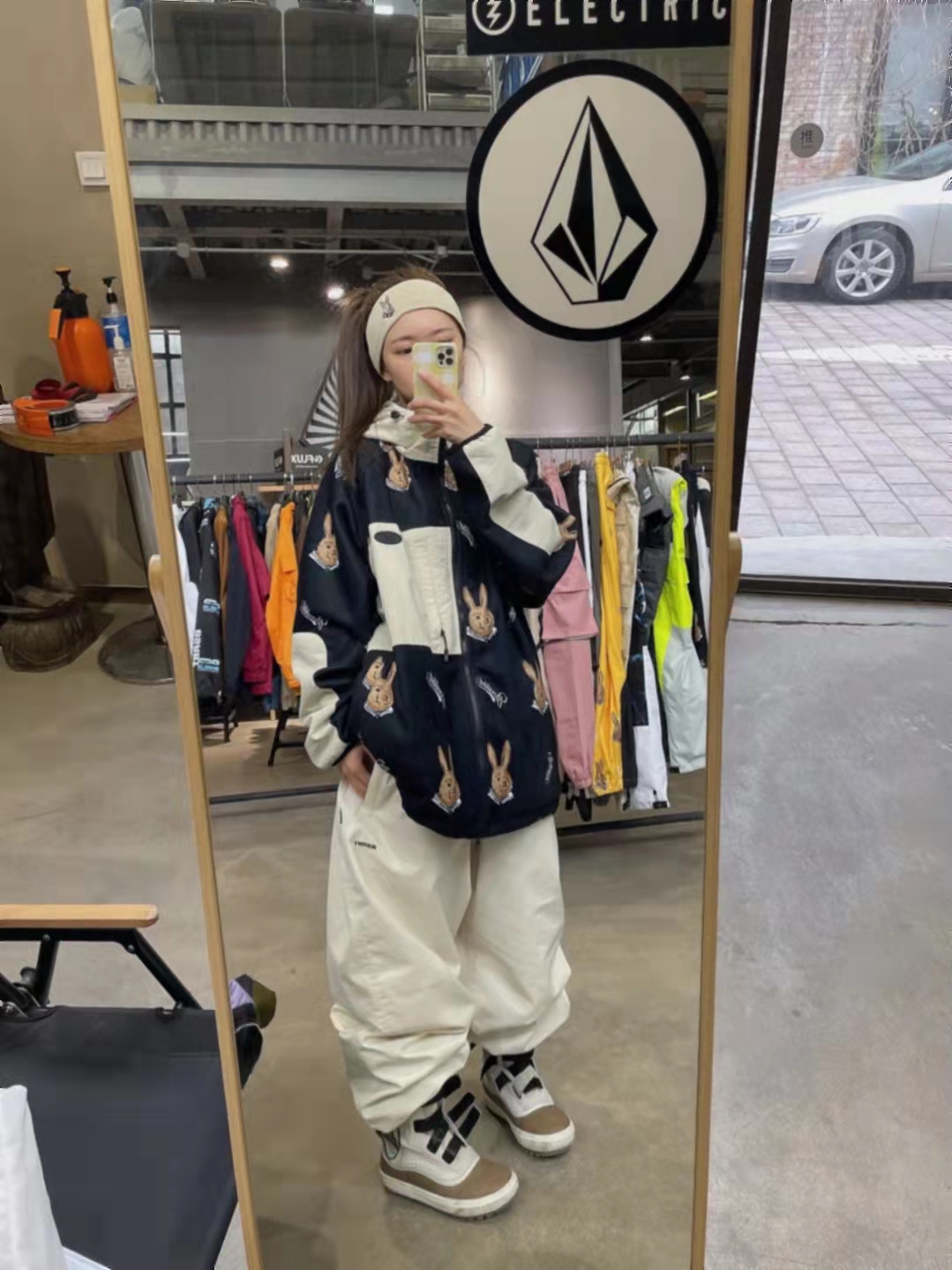 bsrabbit2122 Korean single and double board ski pants khaki all-match loose waterproof wind breathable ins Korean fan