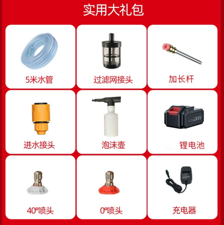 High pressure water gun with kit 1 battery high-pressure water gun with kit 2 batteries high-pressure car wash plan with 1 battery high-pressure car wash package with 2 batteries
