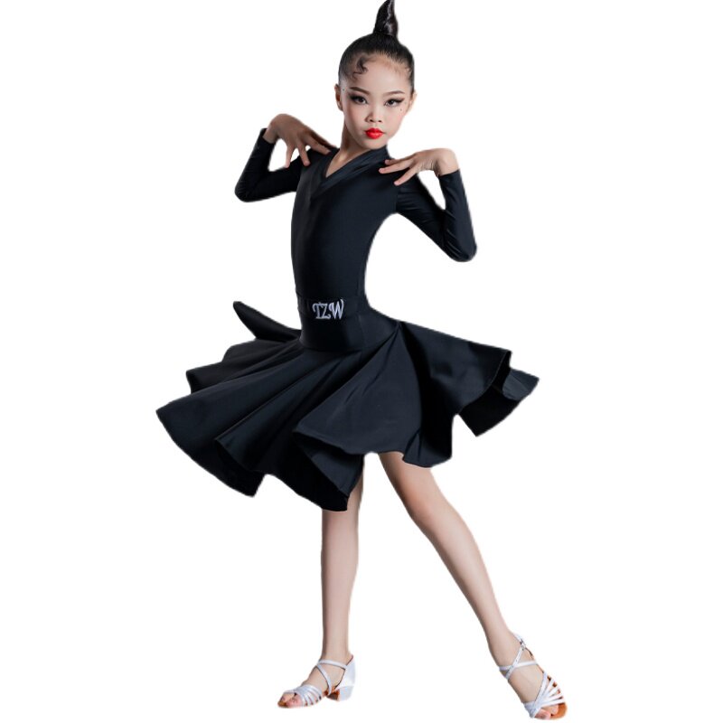 New Latin dance costumes long-sleeved girls' professional regulations competition suits test grade large swing skirt suit performance costumes split skirt