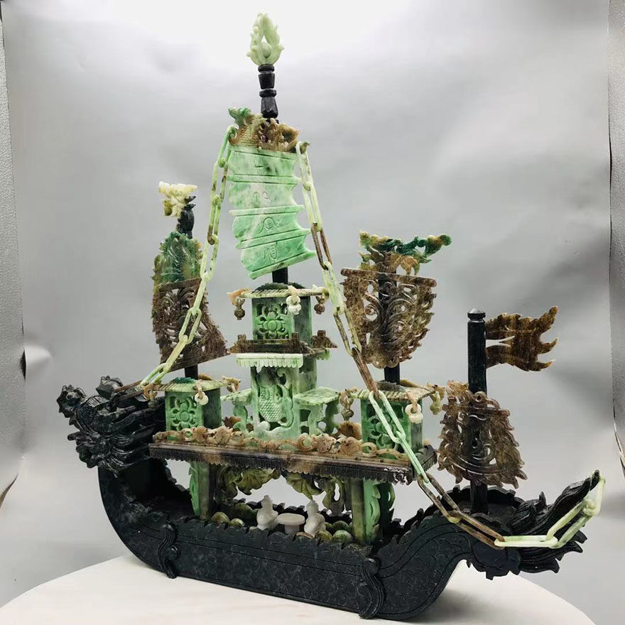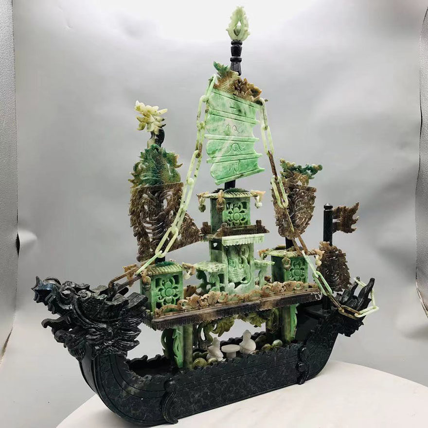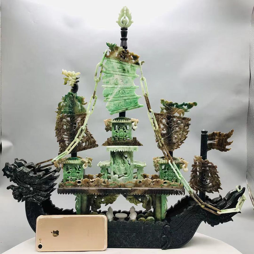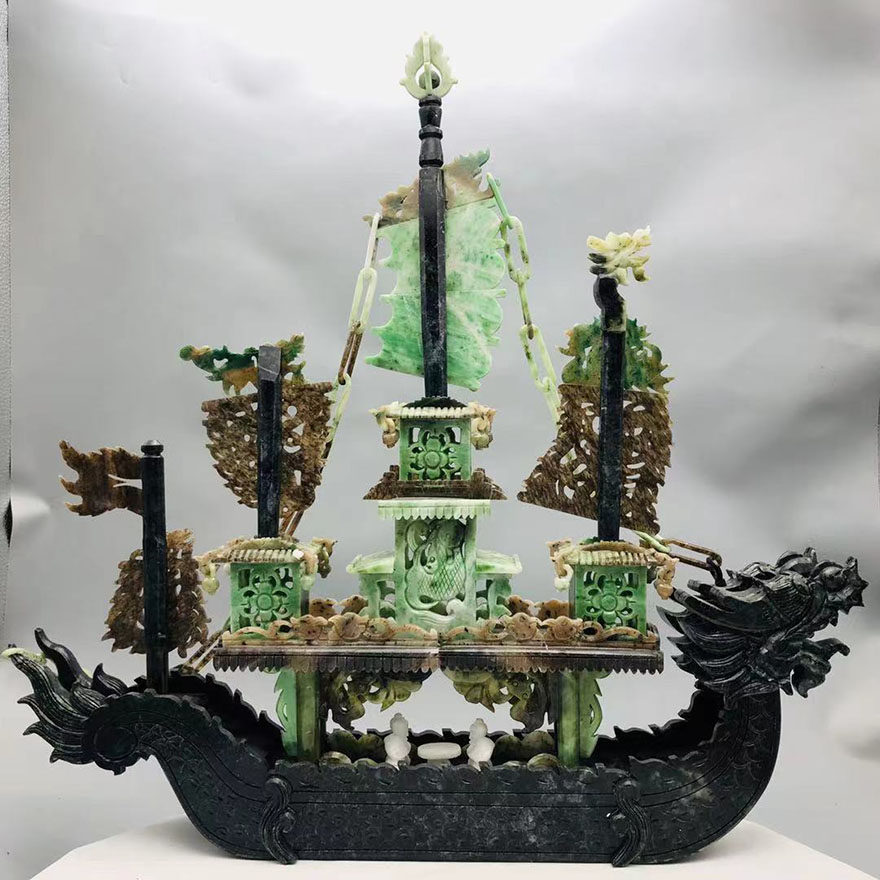 (Dragon Boat-Smooth sailing) Four famous jade boutique Dushan jade ornament 9 5 jin a10