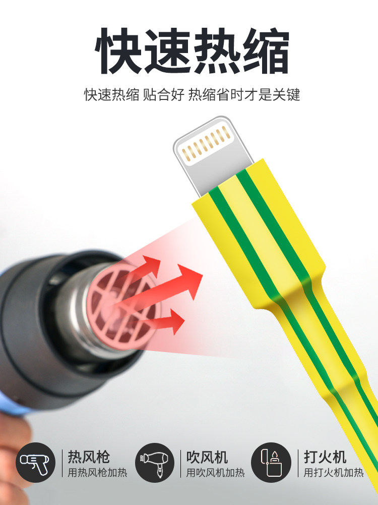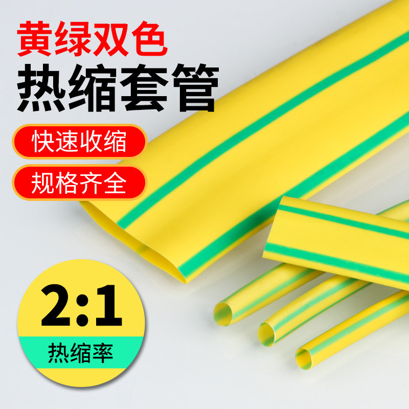 Qinyang yellow-green two-color heat-shrinkable tube insulation soft casing connected to the grounding wire identification electrician wire protective sleeve 3-40mm