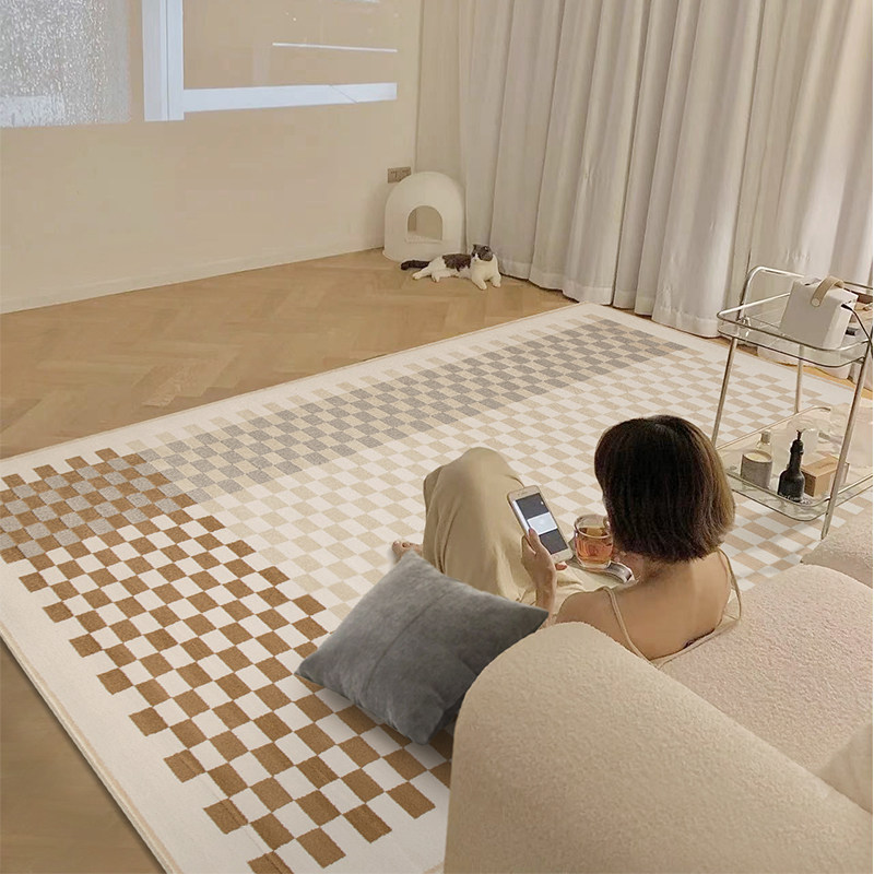 (Billan) Nordic Chessboard Lattice Living Room Carpet Sofa Tea Table Blanket with cat sensation INS Wind bedroom Bedside Blanket