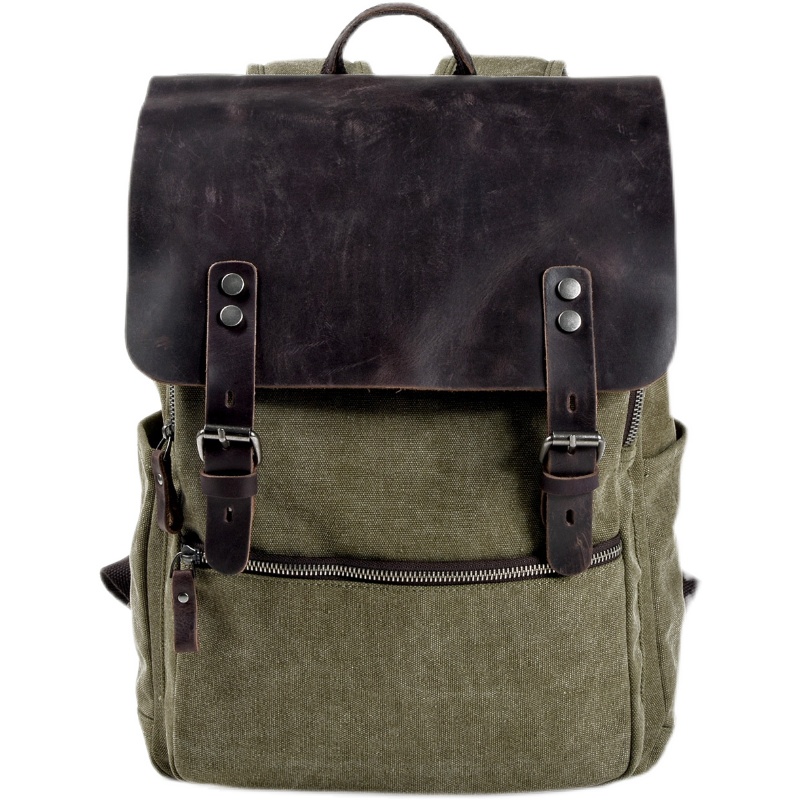 European and American retro business casual canvas backpack outdoor casual short trip large capacity leather computer backpack