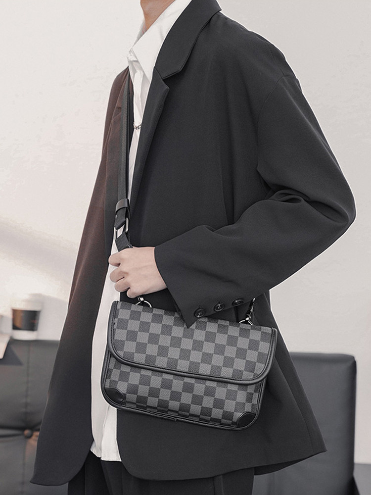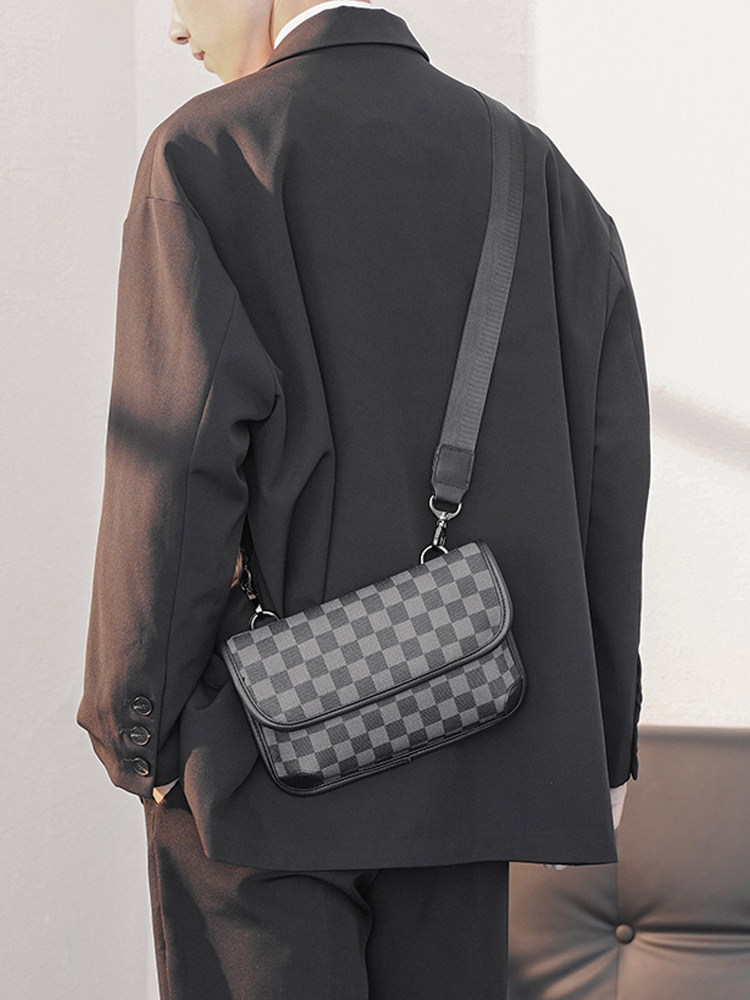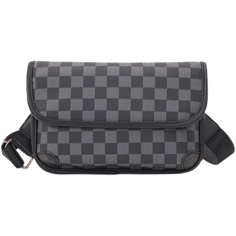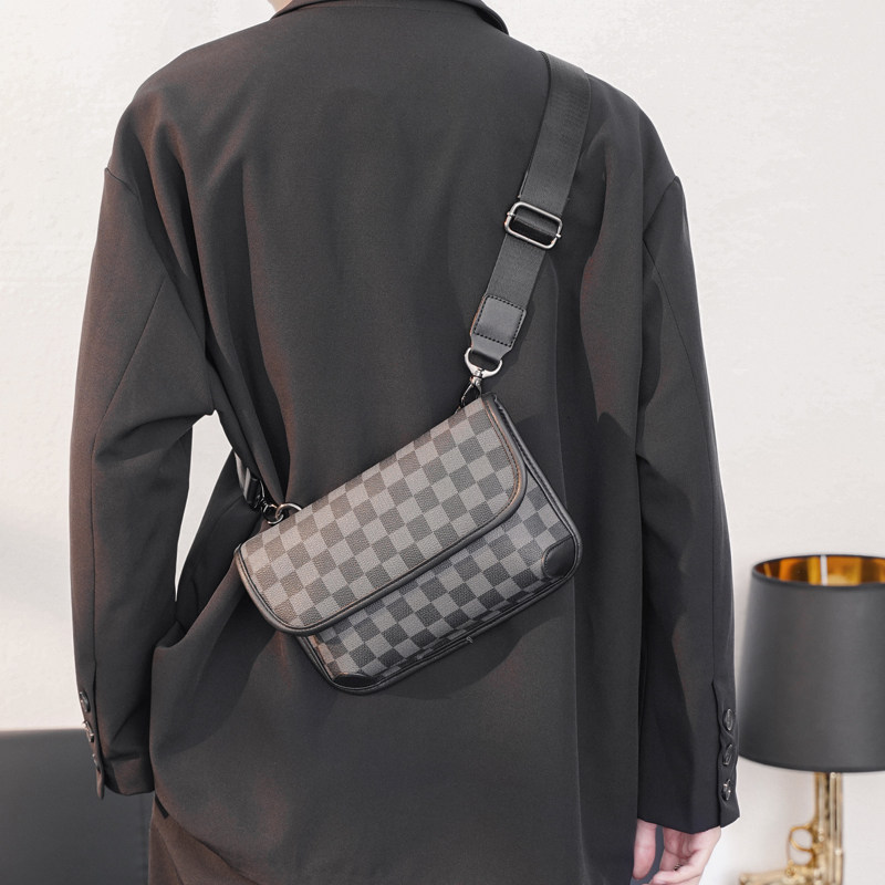 Tide brand leather chest bag men's small square bag Korean version single shoulder bag messenger bag plaid backpack small shoulder bag trendy mobile phone bag