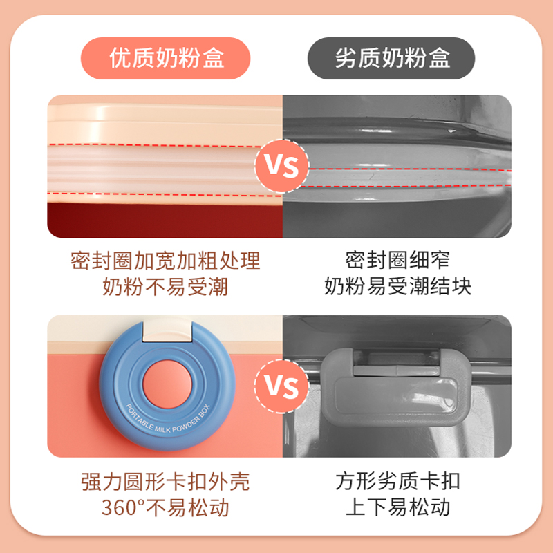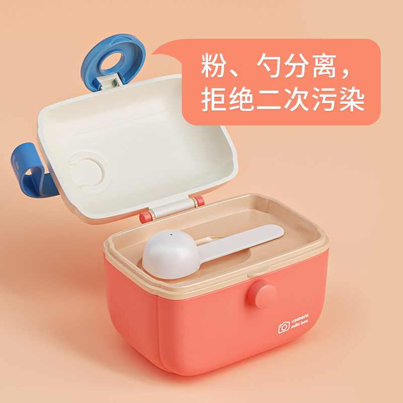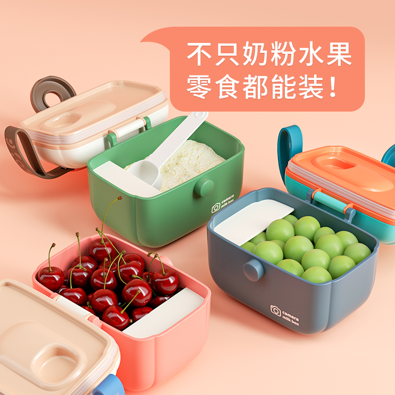 Baby milk powder box portable go out sub-packaging box sealed can moisture-proof storage baby non-staple food rice powder box grid red