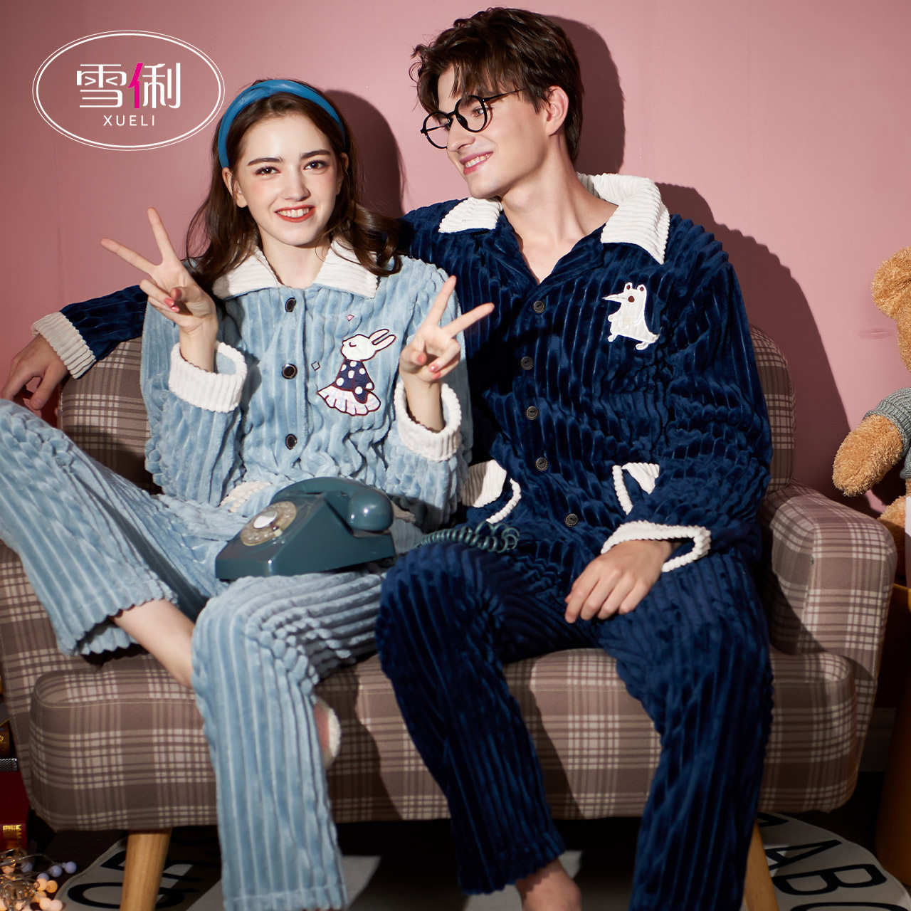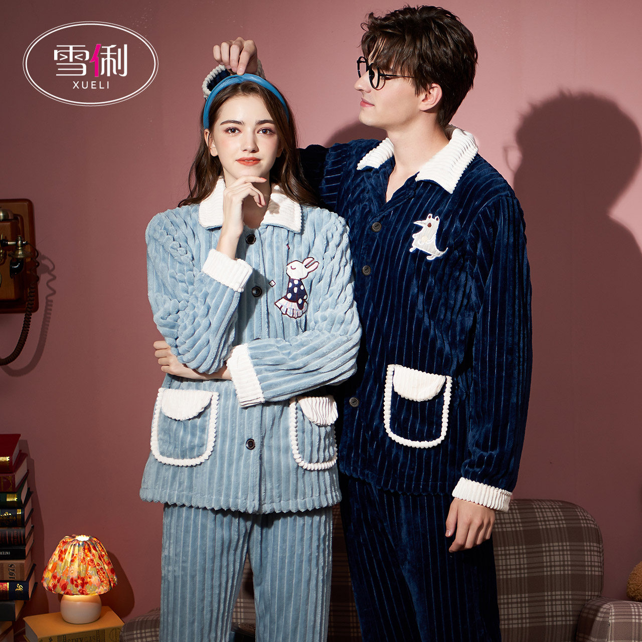 Snow coral velvet couple pajamas women autumn winter 2021 new long sleeves thickened plus fleece flannel men spring and autumn season