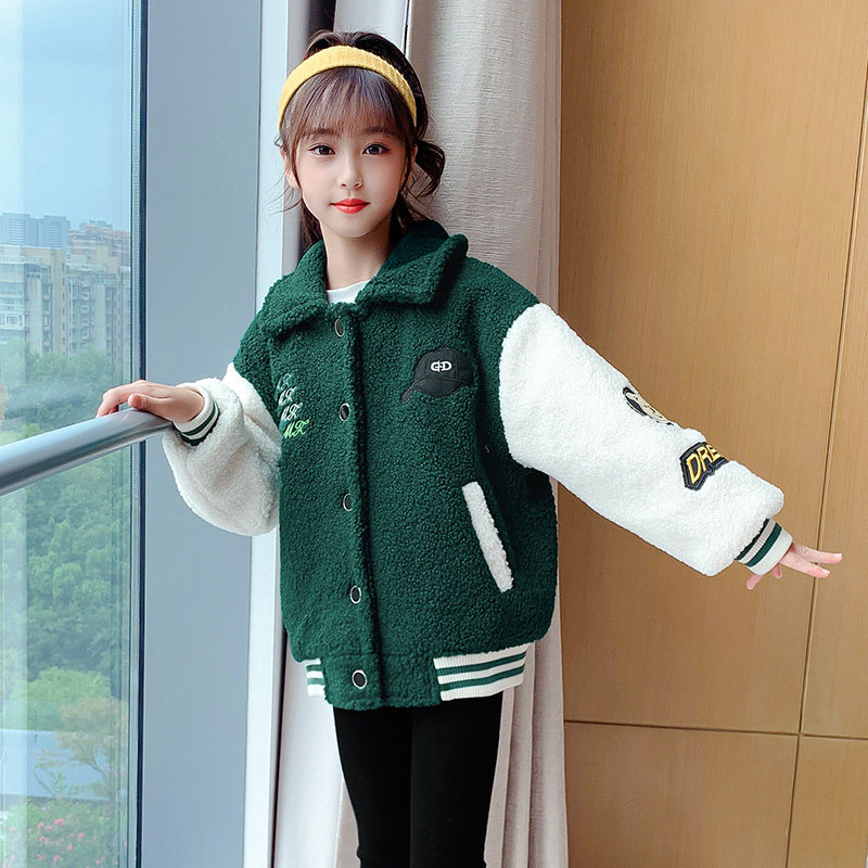 Girl Fashion Wool Sweater 2021 New Internet Red Foreign Pie Children Cashmere Jacket Little Girl Plus Velvet Baseball Suit