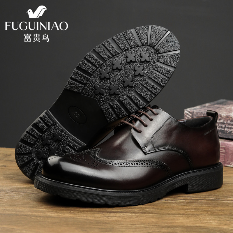 Fugui bird men's shoes Summer Bullock carved large head shoes genuine leather Inn Wind head men Business Fashion Leather Shoes