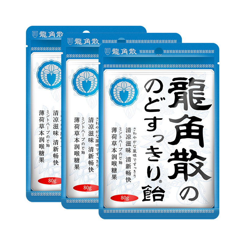 Japan imported dragon horn loose throat candy lozenge mint herbal flavor 80g x 3 bags of clear throat protector hard candy