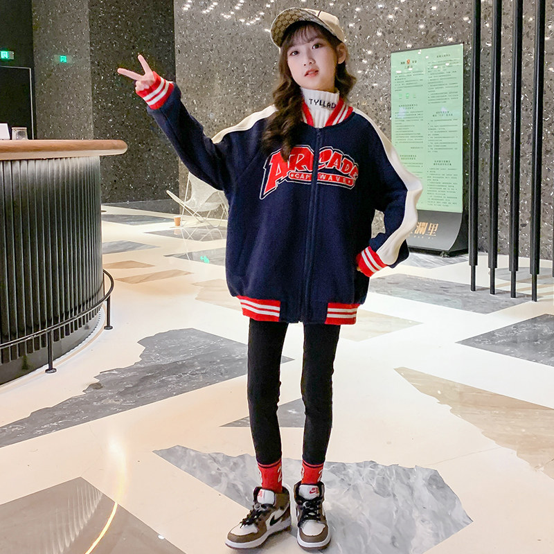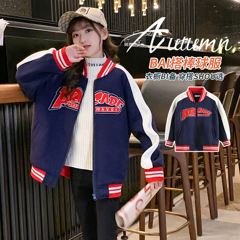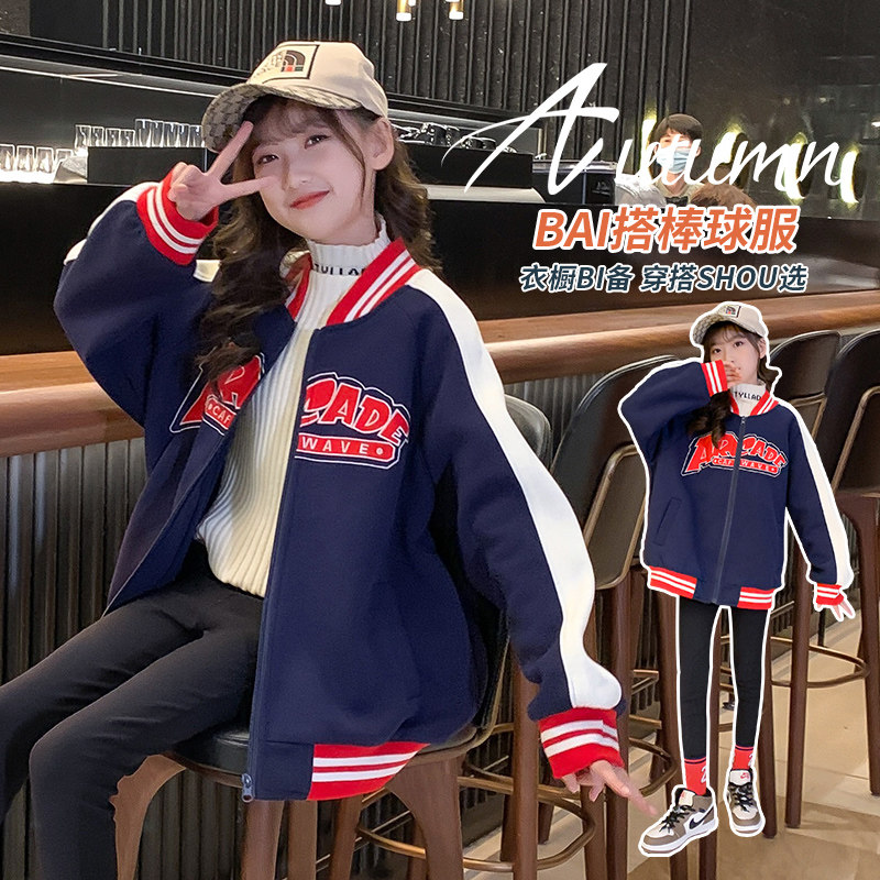 Girls' autumn coat 2022 new spring and autumn clothing children's net red hip-hop baseball uniforms in big children's fashionable tops