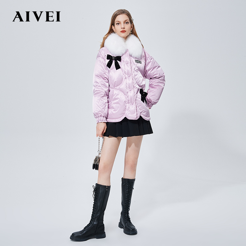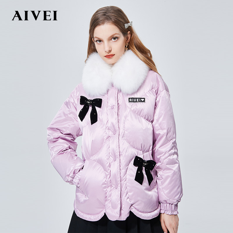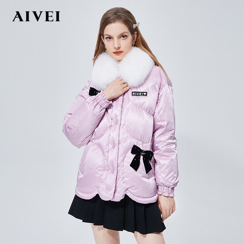 AIVEI congratulates Ivy on the 2021 winter new butterfly tie lace to decrease age-foff feather jacket N0660109