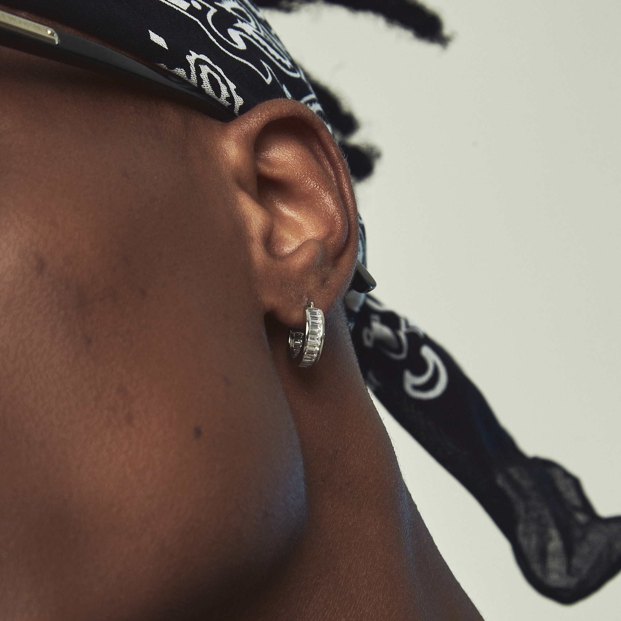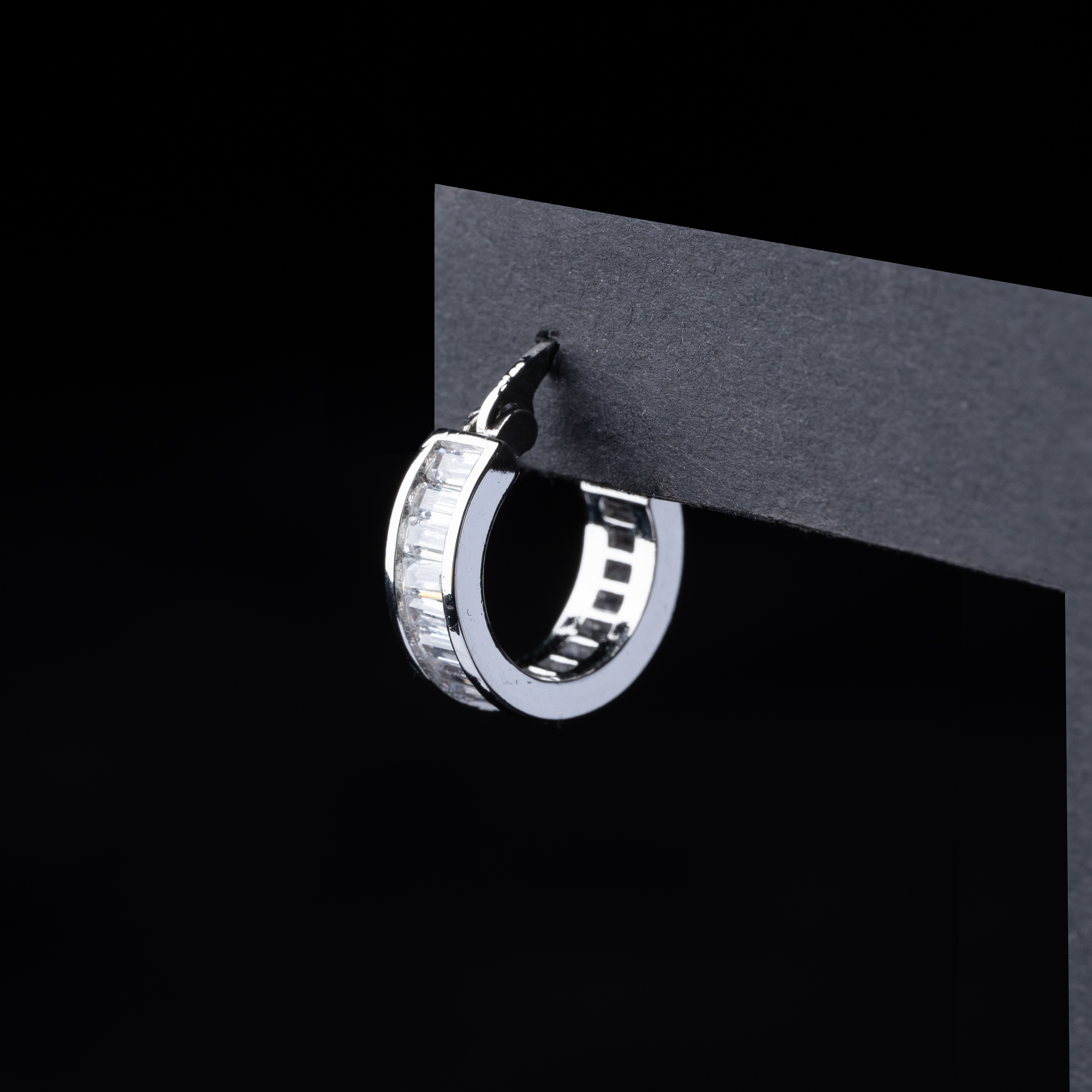 ICEGANGT square drilling single row zircon earrings earrings cool hip-hop and American trendy European and American gold and silver hiphop